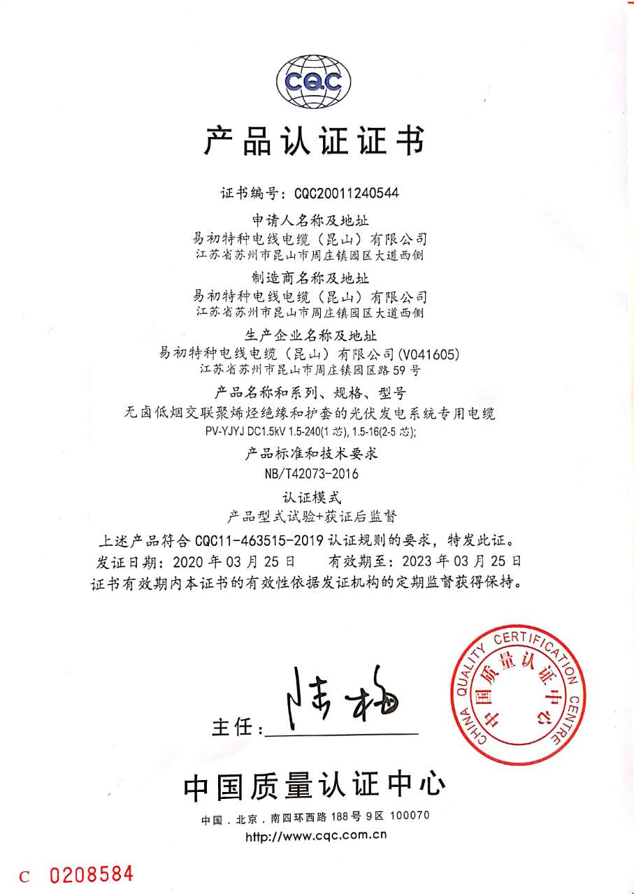 CQC产品认证证书